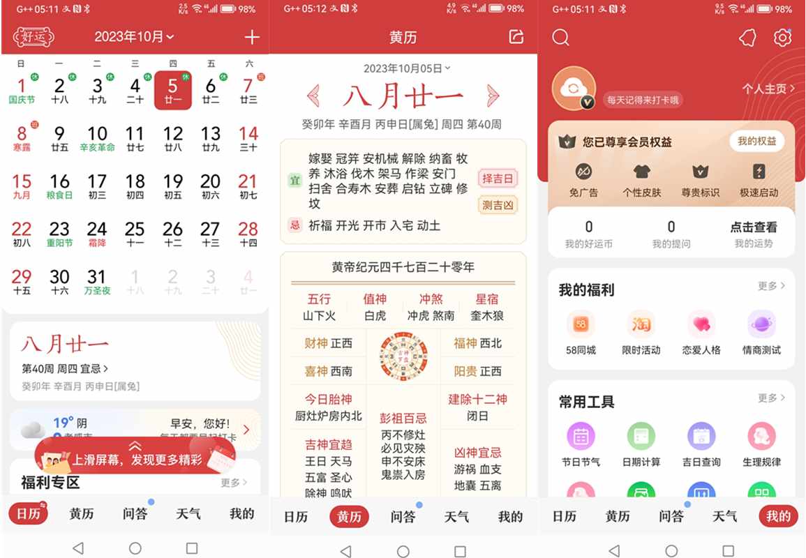 安卓微鲤万年历(原中华万年历)v9.6.5去广告VIP会员解锁版